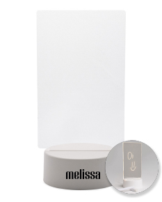 Luminária de mesa com luz Led, tela acrílica e base plástica. Acompanha caneta plástica com apagador integrado, tela 3D acrílica, base Led luminosa com cabo USB e espaço para 3 pilhas AA 1.5V .