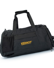 Bolsa confeccionada em filme sintético tipo couro impermeável com capacidade de até 35 litros. Possui compartimento interno amplo dois bolsos em tela e fechamento em zíper, além de quatro bolsos externos de tamanhos variados e fechamento em zíper e um em tela com elástico. Apresenta alças de mão com suporte de juntura e um par de alças ocultas na parte inferior da bolsa, que permitem seu uso como mochila. Contém alça transversal removível.