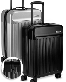 Mala de viagem em ABS Abertura frontal com ziper para acesso ao interior da mala; Saida USB ideal para carregamento de smartphones; Sistema de carrinho de aço; Alça de mão na parte superior Quatro rodas de 360 graus; Acompanha Plaquinha de metal sem personalização. Mala perfurada para aplicação da plaquinha.