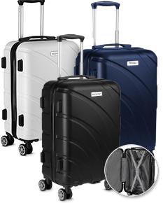 Mala de bordo em plástico ABS Abertura frontal com ziper para acesso ao interior da mala Forro poliéster Sistema de carrinho de aço Alça de mão na lateral e na parte superior; Quatro rodas de 360 graus