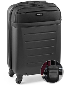 Mala de viagem executivo em ABS e 600D com 4 rodas duplas giratórias, interior forrado e pega extensível em alumínio com altura até 460 mm. Compartimento almofadado para notebook até 15.6" e 2 bolsos frontais. Contém fecho de segurança com senha na lateral. Com placa preta de personalização.
