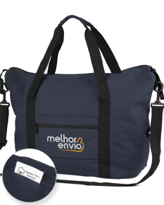 Mala esportiva feita de algodão reciclado. Possui um bolso frontal com zíper para fácil acesso, além de alça de mão e uma alça de ombro ajustável para maior conforto no transporte.