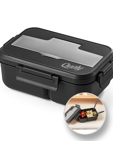 Marmita em PP com capacidade até 1 L. A tampa tem um compartimento para talheres (inclusos). A caixa é apta para microondas, sendo necessário retirar a tampa. Não aconselhável para líquidos. 210 x 145 x 80 mm