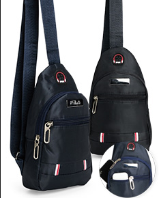 Mini bolsa confeccionada em tecido Oxford resistente à água e alça transversal ajustável em nylon. Possui dois compartimentos e um bolso interno, todos com fechamento em zíper, além de entrada para fones de ouvido e uma pequena placa metálica para personalização.