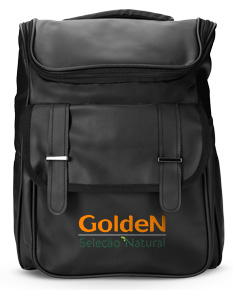 Mochila confeccionada em couro sintético impermeável com capacidade de até 18 litros. Possui compartimento interno para notebook de até 13 polegadas. Apresenta compartimento frontal com par de fivelas e fechamento em botões magnéticos, além de dois bolsos laterais. Possui área das costas e alças de mão e de costas com revestimento em tecido respirável.