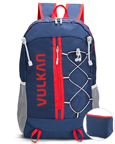Mochila dobrável em poliéster resistente à água, com capacidade de até 20 litros. Quando dobrada, pode ser transportada como um estojo compacto. Aberta, conta com compartimento interno com divisória, bolso frontal amplo, dois bolsos laterais em rede com elástico, compartimento traseiro antifurto e alças com espuma respirável.