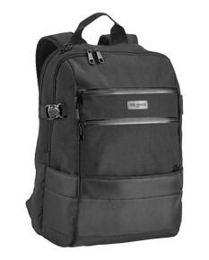 Mochila para notebook. 840D jacquard e 300D. Com 2 compartimentos. Compartimento posterior forrado e almofadado, com 2 divisórias almofadadas para notebook até 15.6'' e tablet 10.5''. Compartimento frontal forrado, com diversos bolsos interiores. 3 bolsos frontais e 2 bolsos laterais. Parte posterior almofadada, com sistema de apoio acolchoado para as costas e alças almofadadas