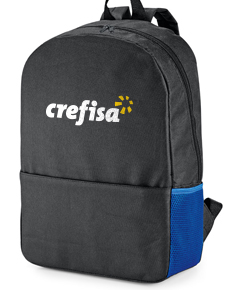Mochila Notebook com divisória, cor preta, fecho de zíper, alças ajustáveis, bolso frontal e logo da marca aplicado.
