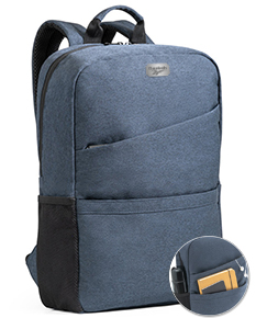 Mochila para notebook em rPET 600D com alças almofadadas. O compartimento principal tem 2 divisórias almofadadas para notebook até 15.6'' e tablet até 10.5''. Contém dois bolsos com fecho na parte frontal e um bolso lateral em rede com elástico.