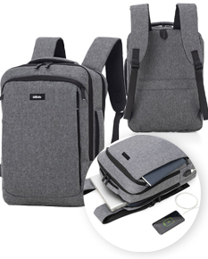 Mochila para notebook em 900D de alta densidade e tarpaulin. Sistema antirroubo: compartimento principal com zíper oculto e parte posterior com 2 bolsos ocultos com zíper, para maior segurança. Compartimento principal forrado e almofadado, com 2 divisórias almofadadas para notebook até 15.6'' e tablet 10.5''.