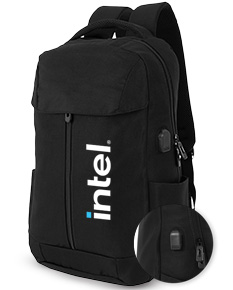 Mochila confeccionada em poliéster 200D impermeável com capacidade para até 20 litros e fechamento em zíper com puxadores plásticos. Dispõe de compartimento principal com divisória interna para notebooks de até 15,6 polegadas. Possui dois compartimentos frontais, sendo um menor, com fechamento em zíper, e outro maior, com bolsos internos e fechamento duplo em zíper vertical e velcro na parte superior. Conta ainda com dois bolsos laterais, adaptador USB externo e revestimento em espuma respirável nas alças de ombro e na alça superior de mão.