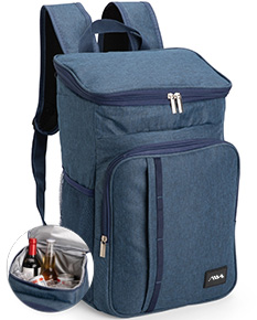 Mochila térmica em poliéster catiônico 300D impermeável com fechamento em zíper e capacidade máxima de 17 litros. Possui compartimento térmico em PEVA antivazamento, dois compartimentos frontais em tamanho diferentes, um par de bolsos em malha de elástico, além de alças de ombros com revestimento em espuma respirável, alça de mão em nylon e plaquinha fixa em PVC.
