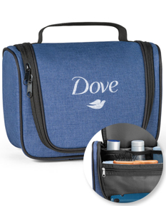 Necessaire em 600D de alta densidade. O compartimento principal tem zíper duplo e revestimento interior em 210D. Contém vários bolsos interiores e gancho no topo para pendurar