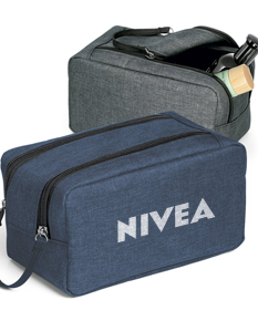 Nécessaire resistente à água e confeccionado em poliéster com mescla de PVC. Possui fechamento em zíper e uma pequena alça para fixação de chaveiro ou gancho.