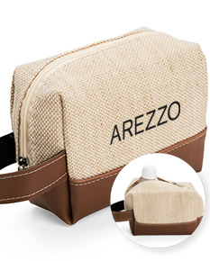 Bolsa de cosméticos em juco (mistura de algodão e juta, 260g/m²) com interior forrado em tecido 70% algodão reciclado e 30% poliéster reciclado. Compartimento espaçoso com zíper. 250 x 130 x 100 mm