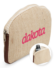 Nécessaire confeccionado em juta, material resistente e sustentável, com fechamento em zíper que garante praticidade no uso. Possui detalhes laterais em bidim que valorizam o design natural. Ideal como brinde corporativo, une utilidade, estilo e apelo ecológico.