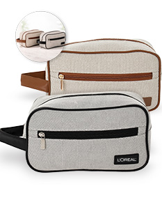 Nécessaire confeccionada em lona, material resistente e adequado para uso frequente, com fechamento em zíper que garante segurança no armazenamento. Possui bolso frontal funcional e compartimento principal com três bolsos internos, facilitando a organização de itens pessoais ou acessórios. Conta ainda com alça lateral que proporciona praticidade no transporte e plaquinha costurada em couro sintético, agregando acabamento diferenciado e espaço para personalização. Um brinde corporativo completo, útil e bem estruturado, pensado para acompanhar a rotina com organização e boa presença de marca.