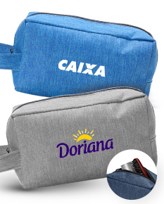 Nécessaire resistente à água, confeccionada em poliéster com mescla de PVC, ideal para proteger itens pessoais no dia a dia ou em viagens. Possui fechamento em zíper e alça de mão lateral, garantindo praticidade no transporte. Um brinde corporativo funcional, moderno e versátil, perfeito para ações promocionais e valorização da marca.