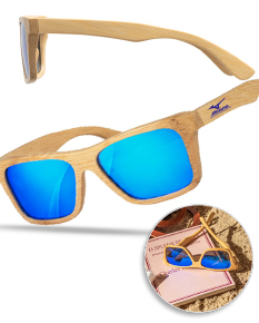 Óculos de sol em bambu com lentes espelhadas e proteção UV400. Produto amigo do ambiente. Fornecido em bolsa de papel kraft. 147 x 46 x 150 mm