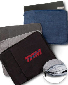 Pasta para tablet e notebook 14 em poliéster resistente à água com dois compartimentos e parte interna com estofamento aveludado.