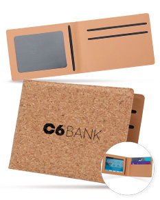 Nosso porta-cartão apresenta um design compacto e funcional. Feito de cortiça, traz um visual rústico combinado com a parte interna em couro sintético, criando um contraste elegante. Possui três compartimentos, incluindo um com visor transparente, que facilita na hora de encontrar o cartão. Perfeito para quem busca organização e segurança para os cartões no dia a dia.