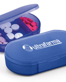 Porta comprimidos com 2 divisórias interiores extraíveis e um campo com lamina cortante.