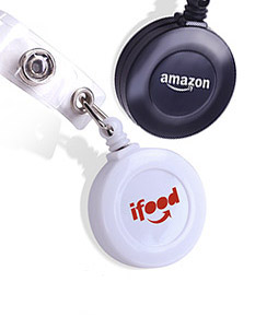 Porta crachá plástico com sistema extensor em nylon.