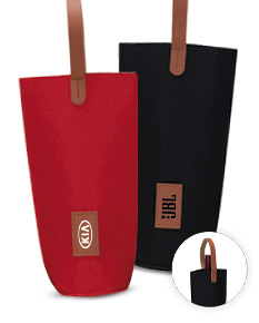 Sacola porta-vinho confeccionada em feltro, material que oferece leveza e proteção no transporte da garrafa. Possui alças de mão que proporcionam praticidade no manuseio e plaquinha retangular frontal em couro sintético, indicada para personalização. Um item elegante e funcional para presentear ou compor ações corporativas.
