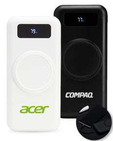 Carregador portátil power bank com 10.000mAh e carregamento via indução ou via cabo. Com display digital indicador de bateria, o carregador contém quatro cabos acoplados: Lightning, Tipo-C, V8 e saída USB para o carregamento da própria bateria. Portas de entrada: V8, Tipo-C e duas portas USB.