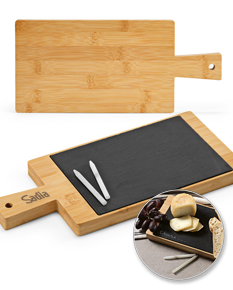 Quadro em bambu com ardósia e 2 gizes inclusos. Contém pega incorporada para facilitar o transporte. Fornecido em caixa presente de papel kraft. A cor e o resultado da impressão nos materiais naturais pode variar entre produtos. 330 x 150 x 20 mm