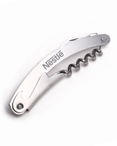 Saca-rolhas de metal. Com abridor de garrafas e canivete de escanção.