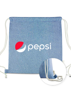 Sacola/mochila confeccionada em algodão mescla reciclado, gramatura 140g/m², com alças em algodão cru.