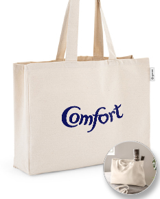 Sacola (220 g/ m²) em algodão e algodão reciclado com alças de 60cm. 500 x 370 x 120 mm