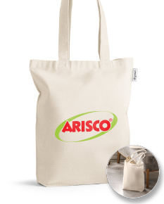 Sacola em algodão (220 g/ m²) composta por 50% algodão e 50% algodão reciclado, com alças de 60cm. 380 x 400 x 100 mm