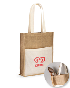 Sacola em juta (240 g/m²) com alças de 65 cm e um bolso frontal 100% algodão medidas 370 x 410 x 100 mm