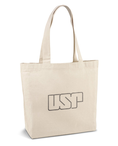 Sacola confeccionada em algodão 220 g/m² com alças de algodão trançado.