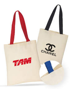 Sacola confeccionada em algodão 220 g/m² com alças de algodão trançado.