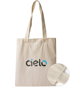 Sacola confeccionada em algodão 220 g/m² com alças de algodão trançado.