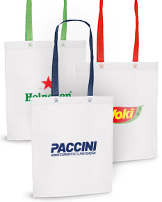 Sacola em non-woven (80 g/m²) termo-selado com alças de 55 cm. 330 x 390 x 80 mm