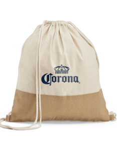 Sacola tipo mochila 100% algodão (160 g/m²) com detalhe em imitação de juta e alça em algodão