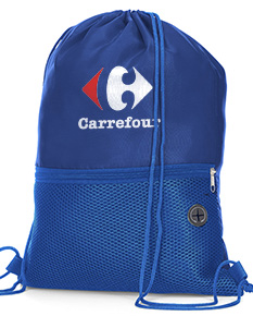 Sacola/mochila em poliéster 210D, resistente e leve, com bolso frontal com zíper que facilita a organização. Versátil e prática, é ideal como brinde corporativo, oferecendo utilidade diária e ótima visibilidade para sua marca.