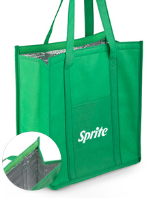 Sacola térmica confeccionada em TNT de 80 g/m², prática e leve para o transporte de alimentos e bebidas. Possui interior costurado com revestimento em algodão e folha de alumínio de 2 mm, que auxilia na conservação térmica. Conta com bolso frontal, fechamento em velcro e alça de 50 cm de ponta a ponta, garantindo praticidade no uso diário.