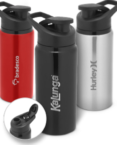 Squeeze esportivo em alumínio com parede simples. Tampa com sistema de abertura flip top. Capacidade até 660 mL.