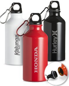 Squeeze de alumínio com capacidade de 420ml com tampa plástica rosqueável. Acompanha mosquetão.