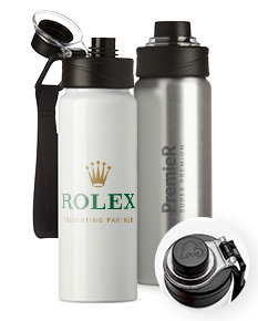 Squeeze em alumínio de 800ml com tampa rosqueável, bocal com proteção plástica e alças de nylon e plástico. Ideal para manter a hidratação com praticidade no dia a dia ou em atividades físicas.
