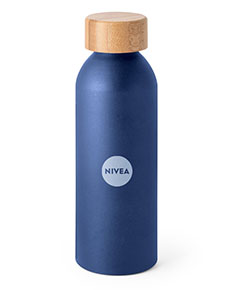 Squeeze de alumínio com acabamento mate e tampa em bambu. Capacidade até 550 ml.