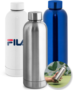 Garrafa de aço inoxidável (90% reciclado) com parede dupla e isolamento a vácuo. Acabamento metálico fosco para um toque sofisticado.