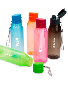 Garrafa plástica 700ml livre de BPA. Garrafa de polipropileno transparente colorida com detalhe superior em relevo, possui tampa rosqueável com abertura de bocal. Acompanha alça de nylon, pode ser encaixado no suporte da tampa. Circunferência : 23,1 cm