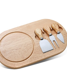 Kit queijo 3 peças com tábua de madeira.