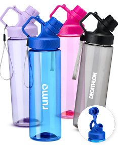 Squeeze de plástico com capacidade máxima de até 750ml. Com tampa rosqueável e articulada, o squeeze acompanha uma alça de nylon para facilitar o transporte, tornando-a uma peça prática e indispensável para uma hidratação regular para o dia a dia.
